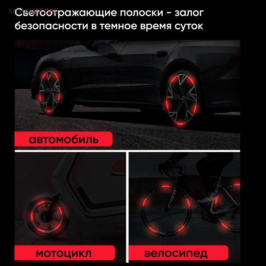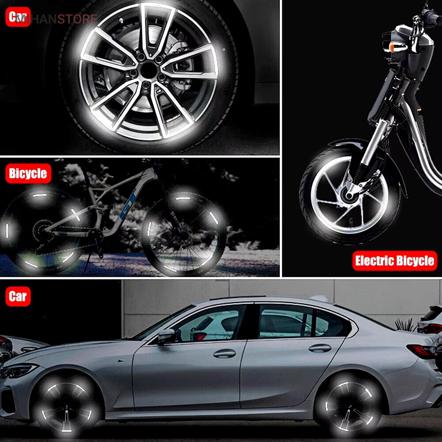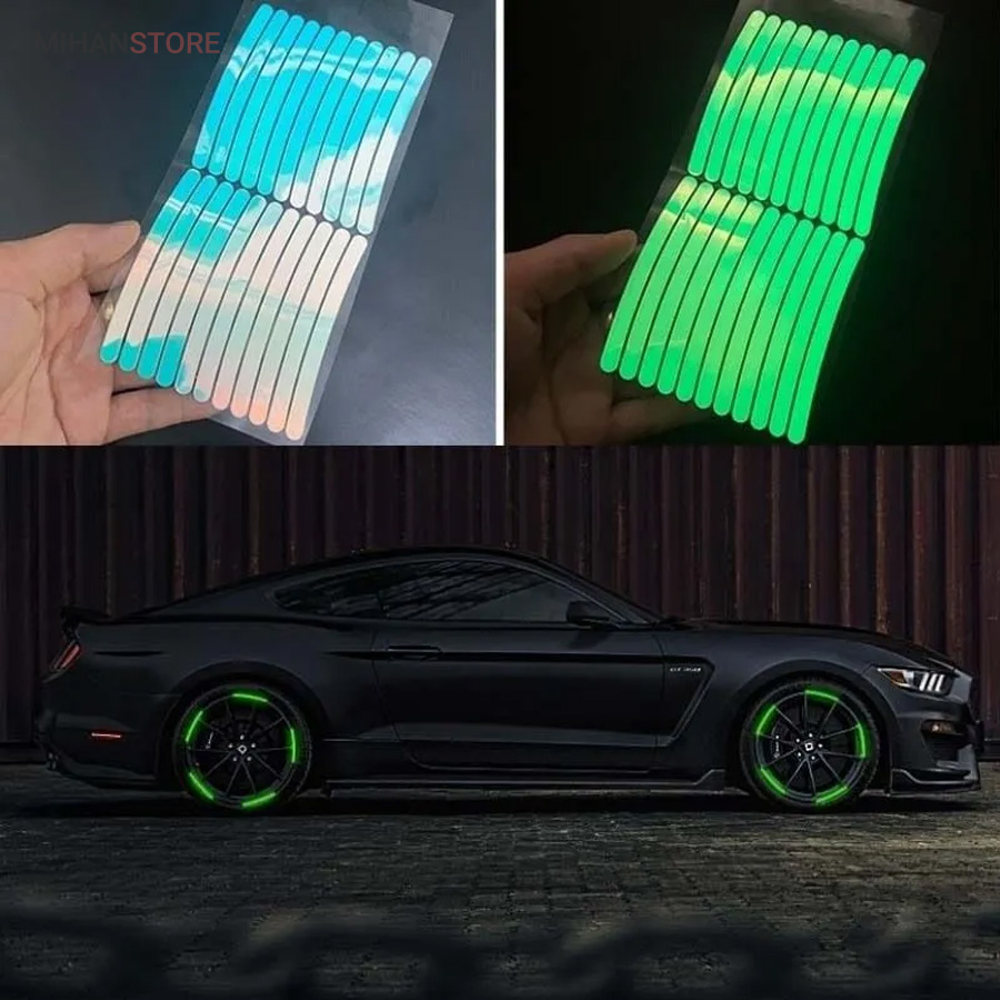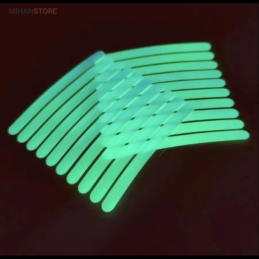 این برچسب ها رو روی رینگ و محیط تایر و لاستیک دوچرخه و یا ماشین میتونید بچسبونید ، در شب و تاریکی اثر درخشندگی شون علاوه بر زیبایی باعث هشدار و امنیت بالای شما هم میشه. مدل شب تاب در تاریکی با بازتاب نوری که قبلا جذب کرده در تاریکی مطلق هم از خودش نور ساطع می کنه.