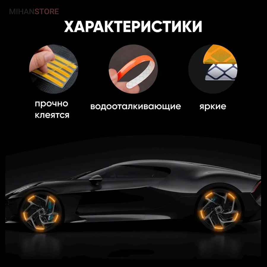 محصولی است که با طراحی منحصر به فرد خود، زیبایی و جذابیت خاصی به خودروهای شما میبخشد. به شکل برچسب چسبانده شده، به سادگی بر روی رینگهای چرخ نصب میشوند و در شب جلوهای خیرهکننده ایجاد میکنند. این محصول دارای 20 عدد برچسب نواری هست که برای 4 عدد لاستیک اتومبیل، پاسخگو هست.