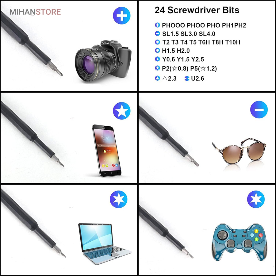 مجموعه پیچ گوشتی 25 پارچه حرفه ای دارای موتور الکتریکی هستند که در داخل آن موجب چرخش بیت یا نوک مخصوص پیچها میشود. این نوکها بسته به نیاز میتوانند با انواع مختلف پیچها سازگاری داشته باشند، مانند پیچهای صلب، پیچهای مغناطیسی، پیچهای صنعتی و پیچهای میکرومتریک. پیچ گوشتیها علاوه بر کاربردهای تعمیراتی و نصبی، برای تولیدات صنعتی انبوه هم بسیار کارآمد هستند. این ابزارها میتوانند برنامهپذیر و تنظیم شونده باشند و باعث افزایش سرعت کار و صرفهجویی در زمان و انرژی شوند. این محصول مناسب کار با گوشی موبایل، عینک، وسایل کامپیوتری، ساعت، اسباب بازی، دوربین عکاسی و… میباشد.